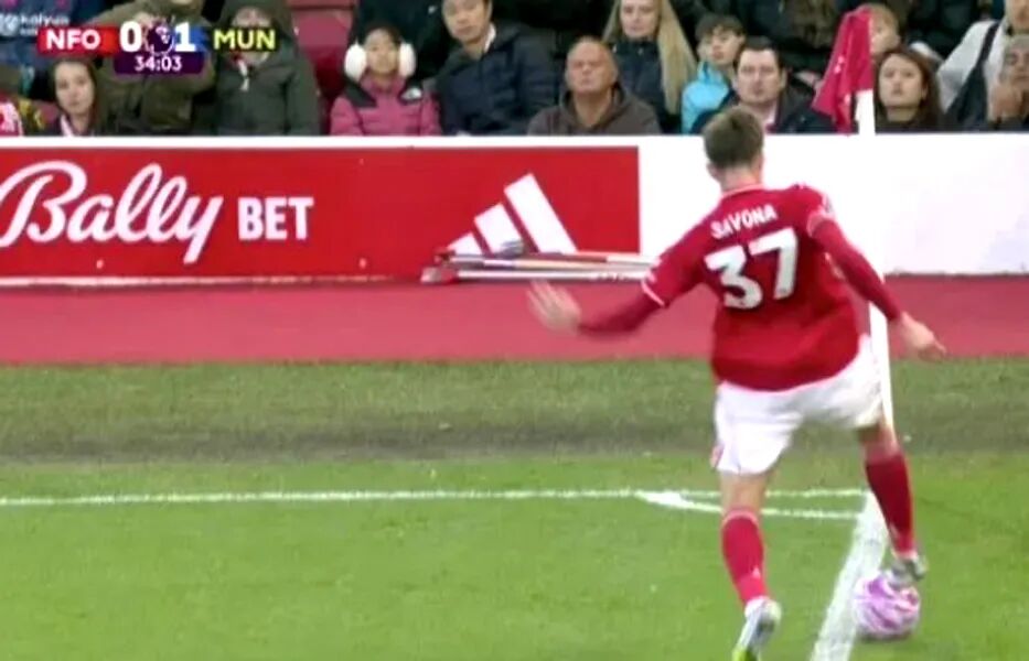 Tình thế trận đấu đã thay đổi do trọng tài Darren England phán đoán sai. Nicolo Savona khống chế bóng ở phần cuối sân của đội Nottingham Forest nhưng trọng tài cho rằng bóng đã đi ra ngoài biên và cho Manchester United được hưởng quả phạt góc.